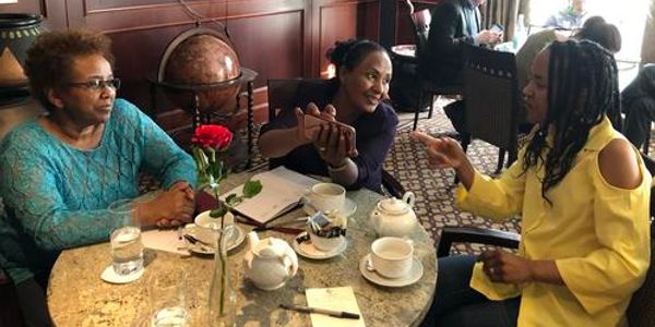 Velma Kirksey-Tarver meeting with the Director of the Ministry of Education, Elizabeth Gessesse, Administrator over the Undergraduates, Masters and PhD programs. Also with the Director of Education, Yeshihareg Negash, who works with children attending primary through 12th grade